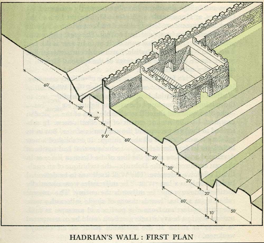 Stone curtain walls with milecastles, and turrets the initial design for the wall was 10ft wide, 15ft