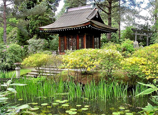 A walled Kitchen Garden This garden has been extensively renovated and today they use cultivation techniques and original varieties of vegetables and fruit to reflect the Edwardian era using varieties that were known to be used at Tatton during this period. It has a vegetable garden and a walled orchard of apple, pear, and plum trees. Produce can be looked at here and then purchased from the garden shop to take home and enjoy. Japanese Garden The Japanese garden is a later introduction and possibly as a result of a visit made to the Anglo-Japanese Exhibition at the White City in London in 1910. It resulted in a team of Japanese workment arriving at the gardens to build it, and the Shinto Shrine and other artefacts are said to have been brought in from Japan. It is a style of Tea Garden and has water, bridges, pathways and lanterns. There is very little flora, but has many Japanese Maples or Acers as well as bamboo and evergreen plants. Glasshouses - there are 7 glasshouses each having it's own speciality in an area of the garden. These are: