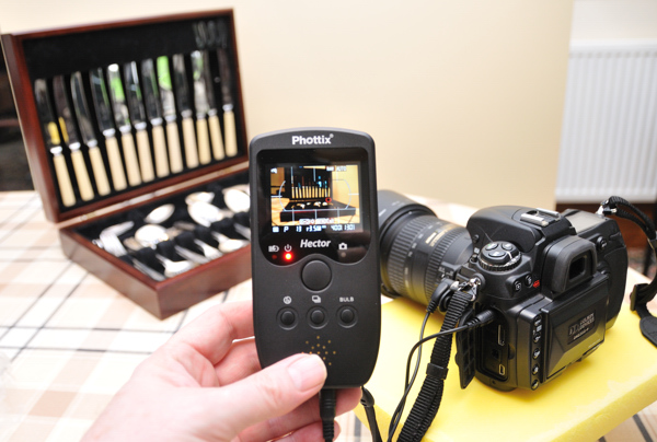 a Nikon D300, this as a 2 metre cable that goes from the unit to two plugs,